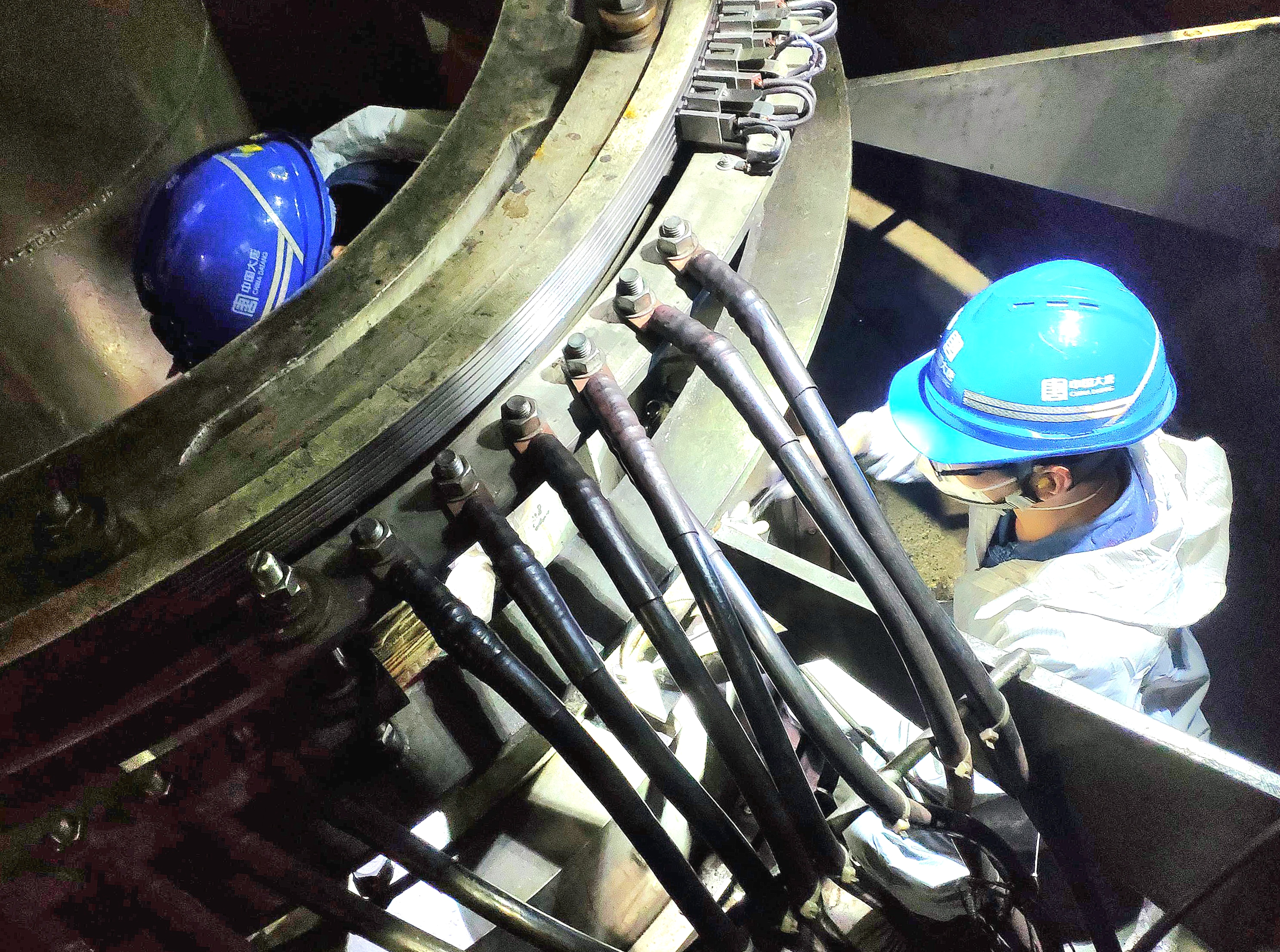 在眾人的努力下,第一塊短路板終于對準位置,接下來就是擰緊螺栓。大家拿起扳手,開始一顆顆地擰動螺栓。每擰一顆螺栓,都需要用盡全身的力氣,扳手在他們手中不停地轉動,發出“咔”的聲音。