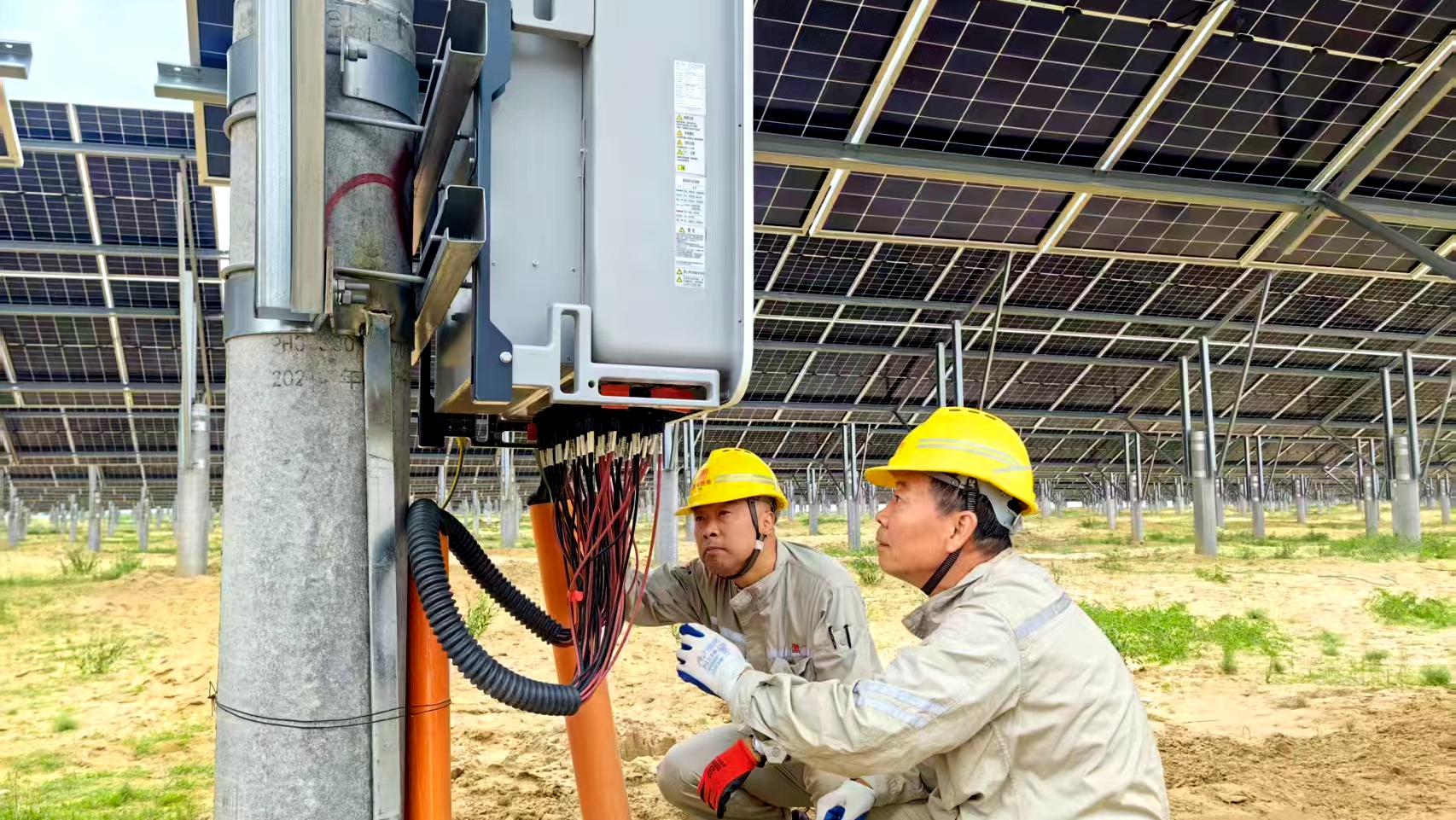 在毛烏素沙漠千里瀚海的南緣,陜西省定邊縣境內,駐扎著一支特殊的“追光團隊”。9月的風已捎來幾分涼意,卻吹不散這支特殊隊伍的熱忱。他們與連綿沙丘為鄰,同呼嘯風沙作伴,在蒼茫大漠中筑起一道璀璨的“光伏長城”。這些如沙漠胡楊般堅韌的守護者,用汗水澆灌綠色能源的夢想,讓青春在戈壁綻放別樣光芒——他們就是西安熱電廠白玉光伏電站的運維尖兵。