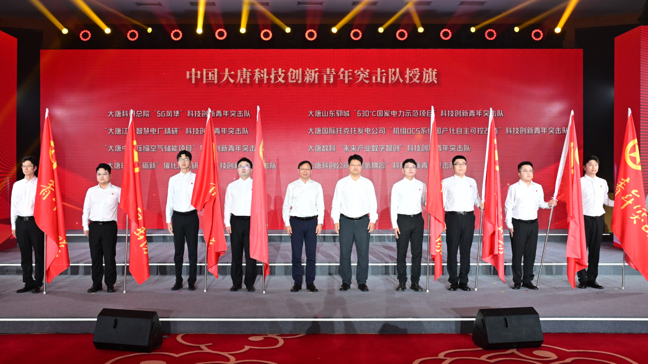 活動最后,還舉行了青年創新創效活動月啟動儀式。張傳江、朱松華為中國大唐科技創新青年突擊隊授旗。中國大唐將以青年創新創效活動月為契機,集中開展“八個一”系列活動,引導廣大青年增強創新意識、培養創新能力、投身創新實踐,發揮科技創新生力軍作用,在建設新型能源體系和新型電力系統征程中再立新功。