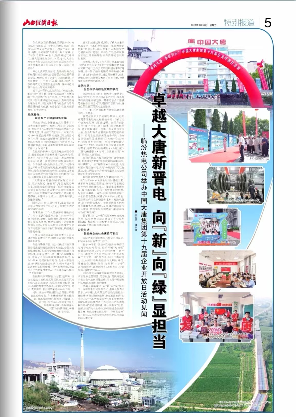 [山西經濟日報]2025-09-19-5卓越大唐新晉電 向新向綠顯擔當——臨汾熱電公司舉辦中國大唐集團第十九屆企業開放日活動見聞