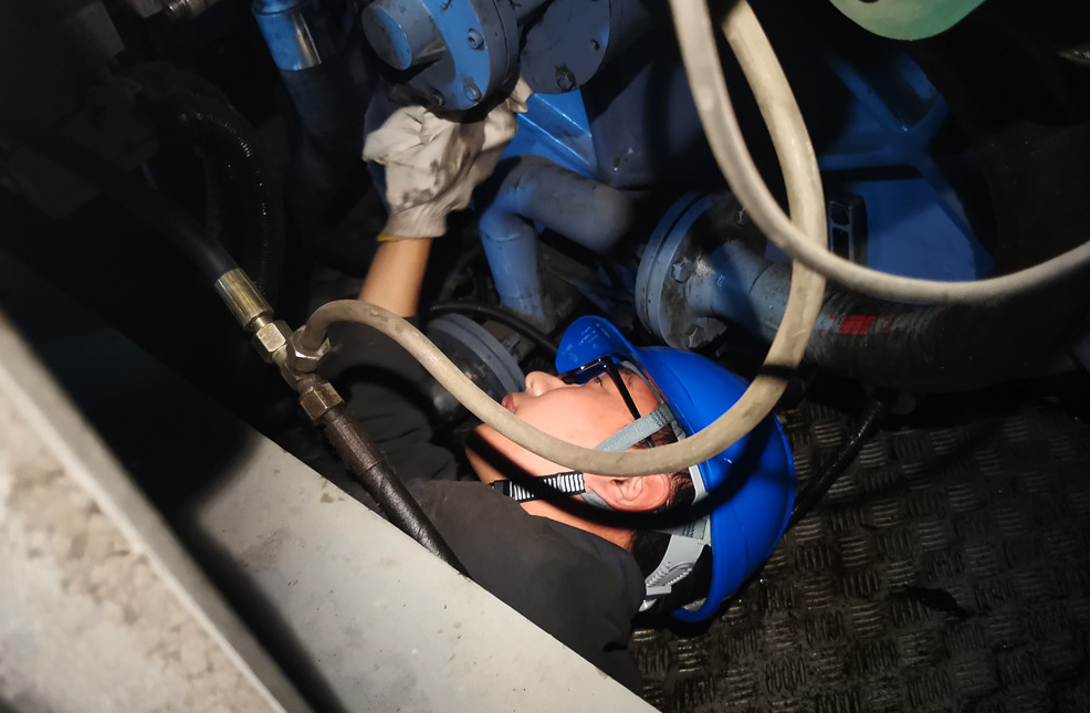 現場人員在檢查齒輪箱(龐延堃/攝)