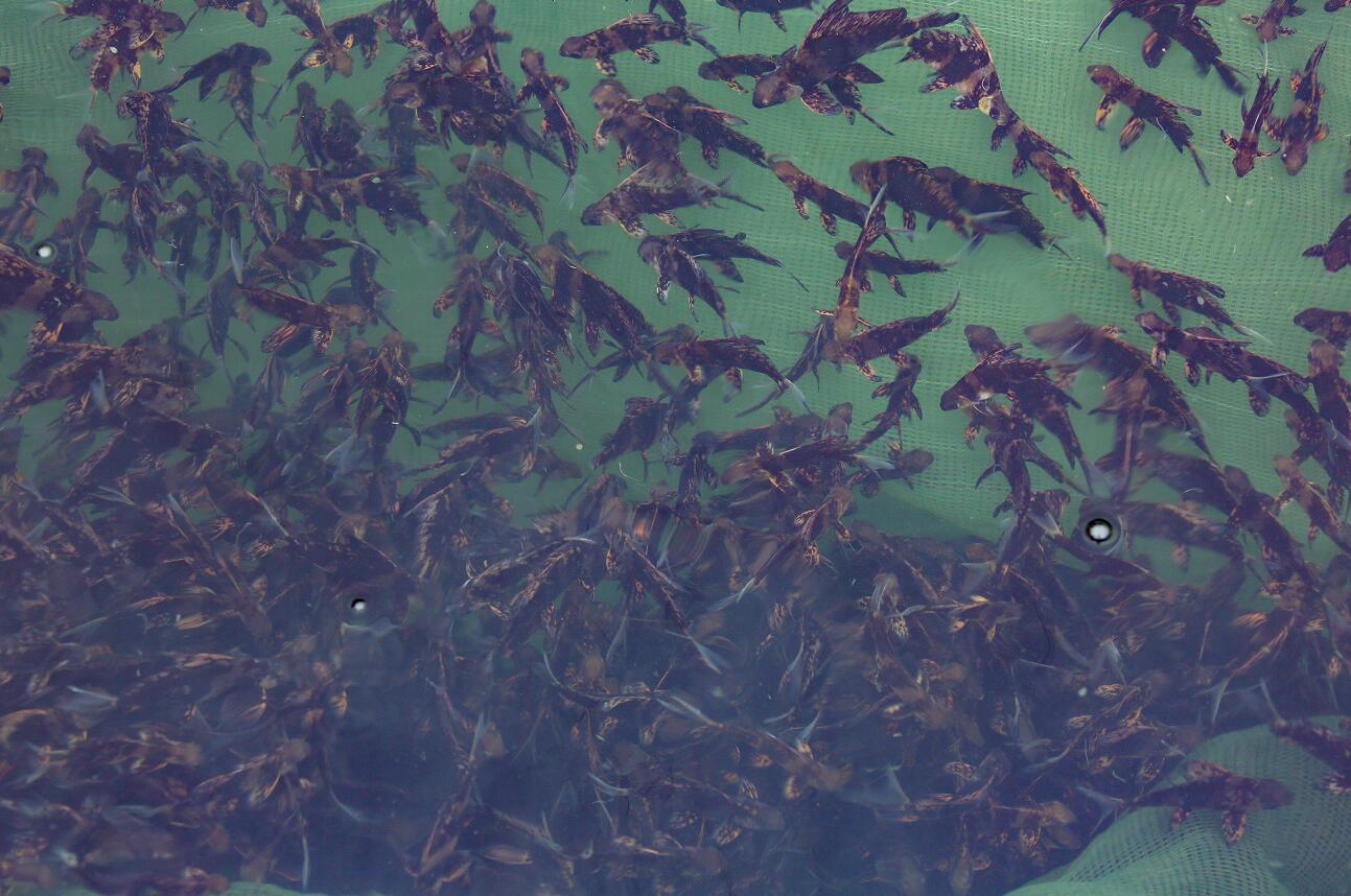 4月12日,重慶分公司彭水-武隆銀盤水電站魚類增殖放流站內,40個方方正正的水池內,工作人員在為水中的魚苗充氧。這個放流站堪稱魚類“托兒所”,有親魚池、苗種池、繁育車間、供排水系統等完備設施,能夠滿足種魚飼養、魚苗孵化和培育等要求。