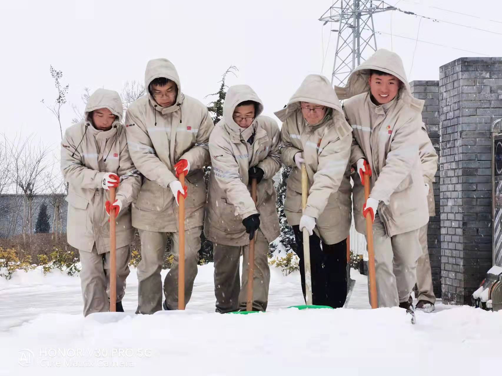 組織升壓站職工對站內道路進行清雪。陳偉攝