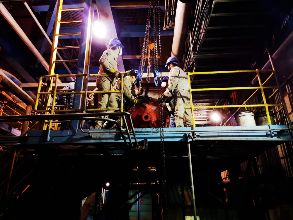 搶修4號鍋爐撈渣機(王小周/攝)